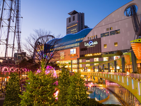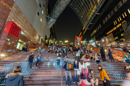 FUKUOKA, JAPAN-DEC 01: View of Hakata Station at night on Dec 01, 2015 in Fukuoka, Japan. It was illuminated for Christmas.