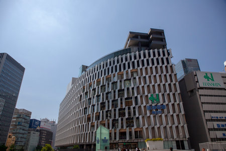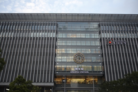 Fukuoka, Japan - April 10, 2024: Hakata station and bus terminal square