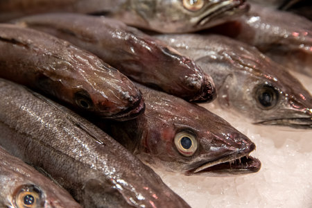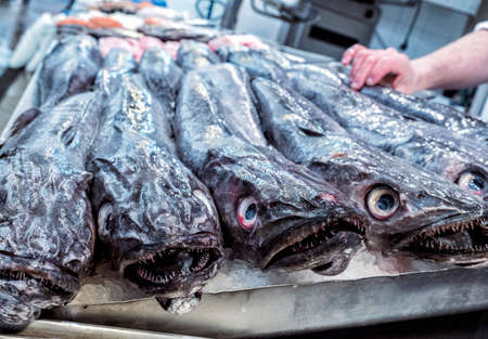 Fresh mediterranean cod-fish for sale on market of Marseille, France