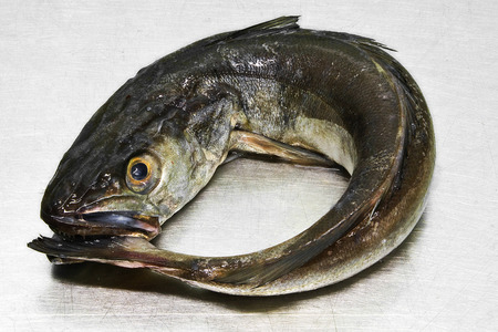European Hake fish-Merluccius merluccius isolated on a white studio background.