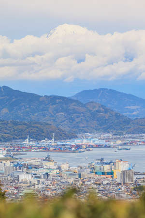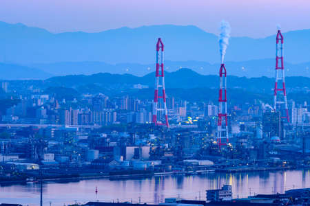 View of the summer blue sky and the industrial city of Kitakyushu, Fukuoka
