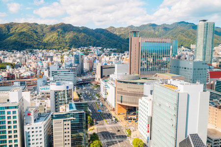 Kobe, Japan - October 1, 2018 : Kobe Sannomiya station and modern cityscape