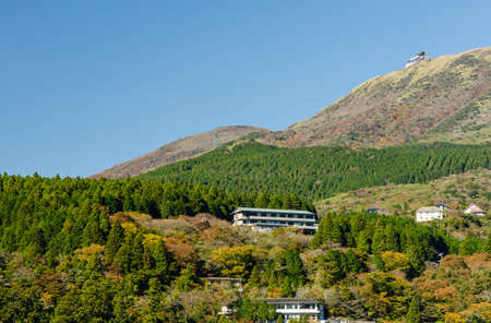View of the mountain landscape in Hakone, Japan. Copy space for text