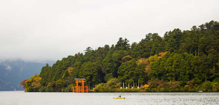 Lake Hakone,and The leaves begin to change color in Autumn, Japan.