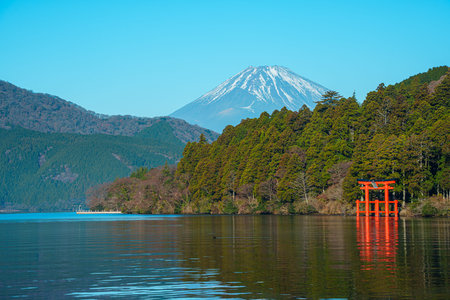 Mount Fuji, Lake Ashinoko, Hakone, Japan.