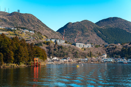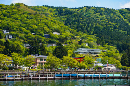Scenery of Hakone Barrier and Lake Ashinoko in Hakone, Japan