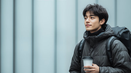 Contemplative young man portrait against a neutral plain background with copy space. Perfect for various concepts.