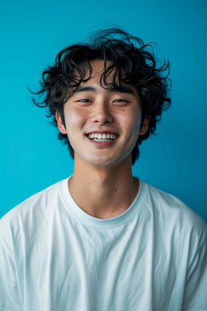 Teen Chinese Man with Brown Curly Hair 1990s style Illustration.