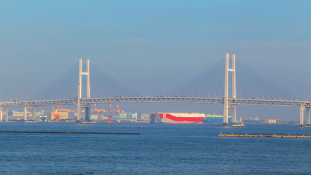 Yokohama Baybridge, which is wrapped in the morningland. Shooting Location: Yokohama-city kanagawa prefecture