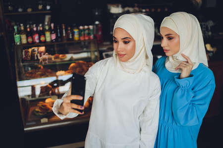 Portrait of Arab women wearing traditional clothes or abaya