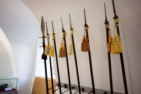 Ancient halberds in the corridor of a museum