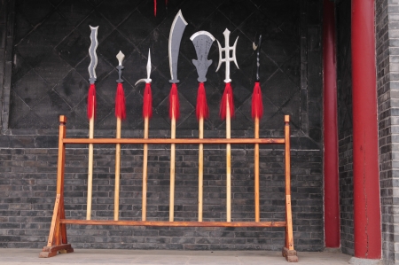 Ancient Chinese weapons, blue tones.