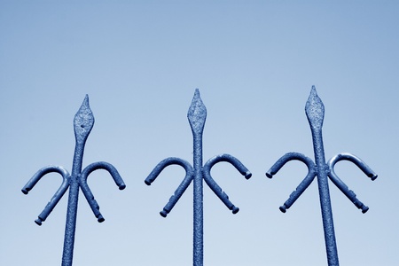 Set of medieval spear points against a blue sky