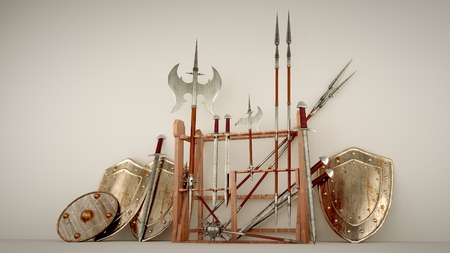 Ancient medieval weapons. 3d illustration on a non-isolated background.