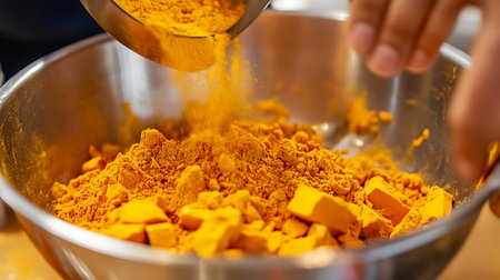 The art of mixing turmeric with other spices for vibrant flavorful dishes.