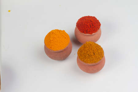 Haldi or Turmeric Powder Ring on the white background, selective focus
