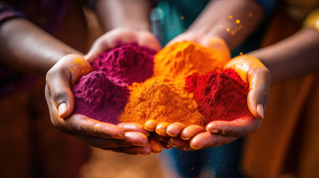 Hands holding colorful holi powder, AI