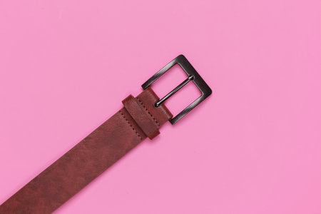 Leather brown belt on pink background