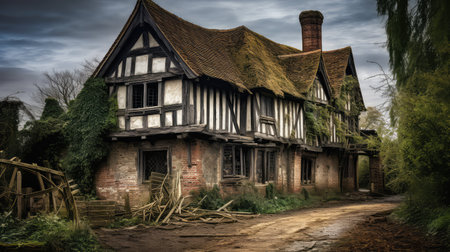Tudor house cottage. Old english rural. Generate Ai