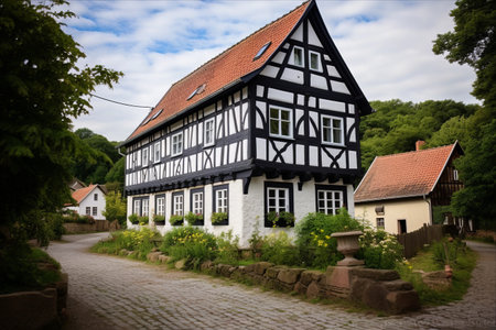 Traditional countryside house in Fachwerk architectural style.