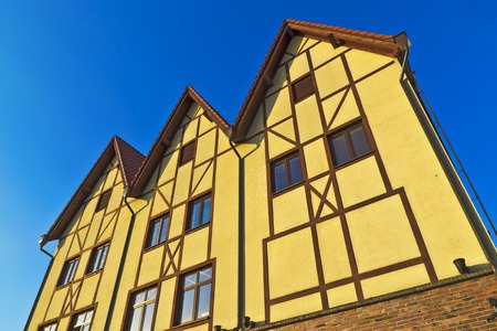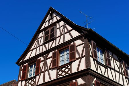 The photograph of the facade of a half-timbered house