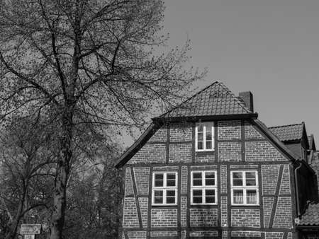 facade of historic half-timbered house at Buxtehude, Lower Saxony