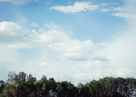 Fresh green trees and blue sky and clouds