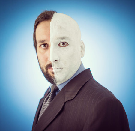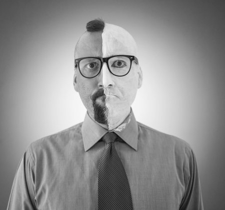 Conceptual two sides face portait photo of a businessman