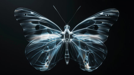 X-ray image of a butterfly on a black background. Anatomy of insects. Aesthetic nature concept. Generative AI.