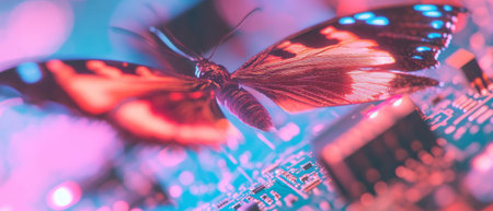 Fusion of nature and technology represented by butterfly wings and circuit board