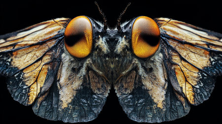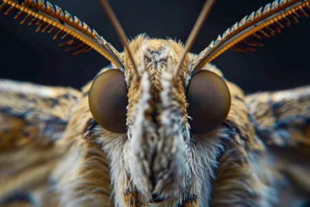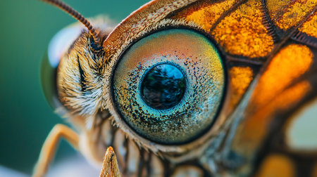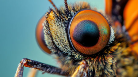This macro shot reveals the stunning features of a butterfly's face, highlighting its delicate eyes and antennae, taken in a garden on a sunny afternoon.