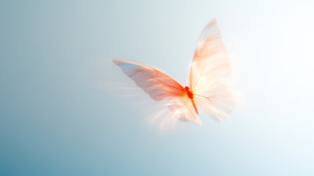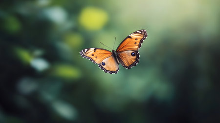 AI-generated An orange butterfly gracefully flies against a soft, warmtoned background, showcasing its wings in midair. The image evokes a sense of freedom and gentle movement.