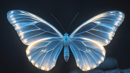 AI Generated. Luminous Butterfly Wings Glowing In The Dark Night
