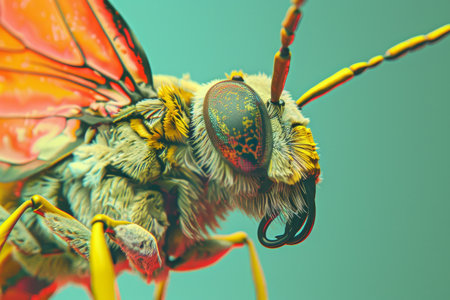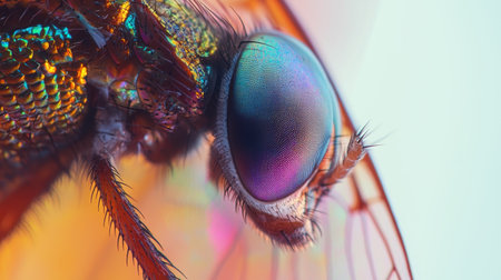 This stunning close-up showcases the intricate details of an insect's eye, revealing a vibrant color palette and mesmerizing textures that highlight the beauty of nature.