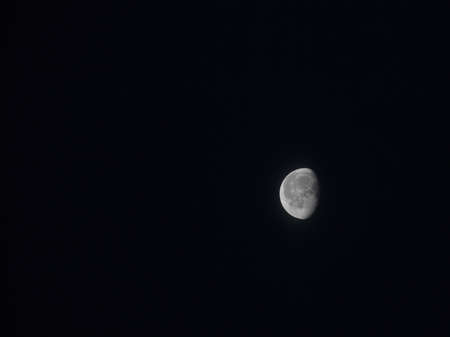 Natural night background with dark sky and half moon, earth satellite. Waxing gibbous phase.