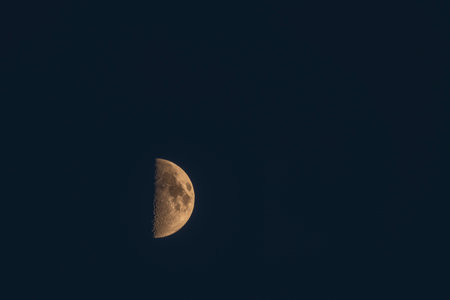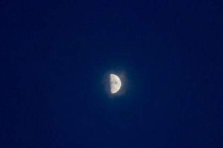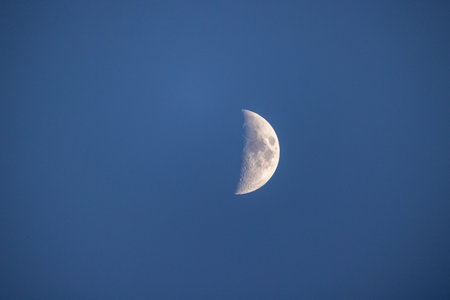 The Half Moon seen during the Day in late December. High Quality Photo of the Moon during the day exactly in Half