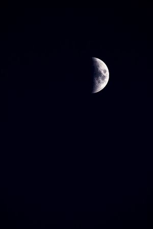 Night sky background with half of the moon on black sky. Astro photo on winter night with soft selective focus. High quality photo