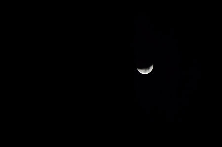 Night of a moon eclipse, dark nighttime sky background with an obscuration, horror holiday, Halloween night