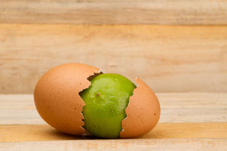 Baking, pastry making or tasty breakfast concept. Two cracked eggshells with strong light and shadows on white cutting board. High quality photo