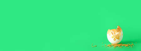 Cracked egg shell with sprinkles on green background with space for text. easter celebration