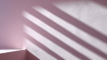 A tranquil soft pink wall illuminated by diagonal shadows, offering a serene and minimalistic vibe ideal for interior design and creative inspiration.