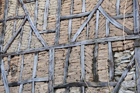 Old adobe wall of the half timbered house.