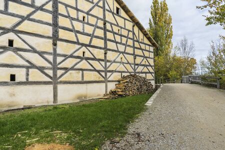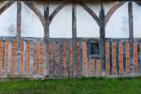 The old wall of the half timbered farmhouse.