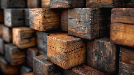 close-up of weathered wood beams before restoration, created with generative ai