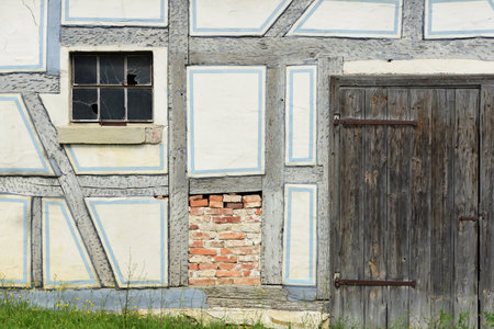 detail of a half-timbered building on bornholm, denmark