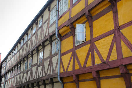 Historic timbered wooden buildings in the center of the city, Aalborg, Denmark, Europe.