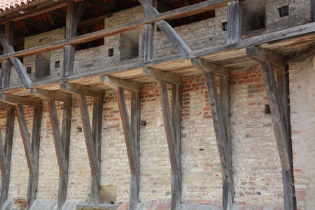 Details of the bricks wall with timber. Germany.