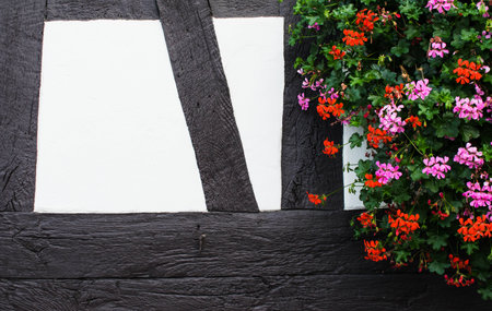 German house with flowers. Background