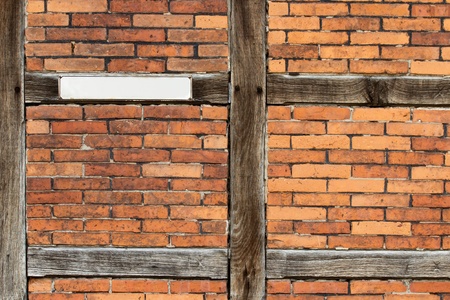 Old wooden framework front with a blank sign
