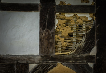 wall of ancient timber framed building